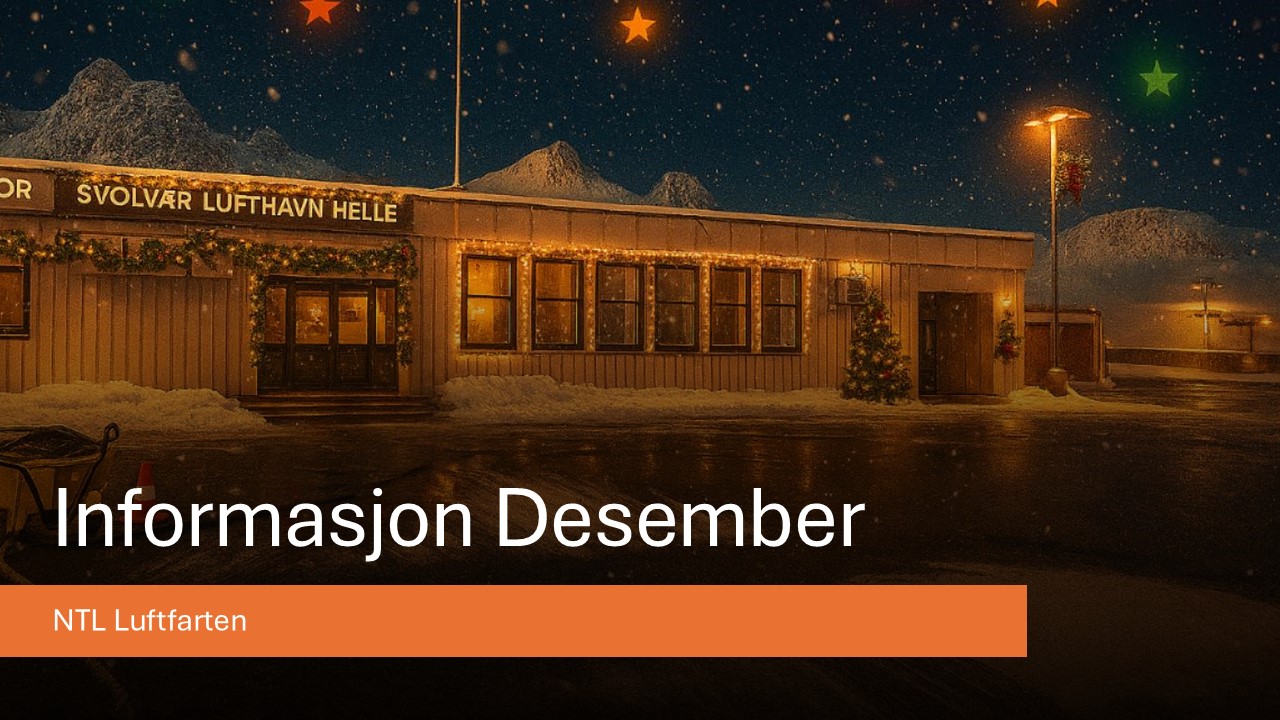 Vi håper alle har hatt en fin julehøytid og nyttårsfeiring. I NTL Luftfarten er vi godt i gang igjen med aktivitet etter en god julefri. Her kommer info for januar 2025